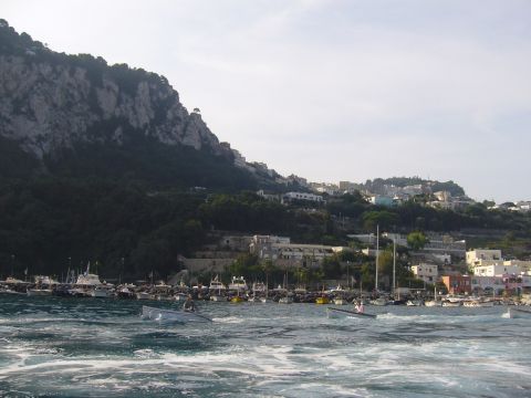 カプリ島(2)。午前8時頃ですが、青の洞窟へ向かう観光客でいっぱいです。