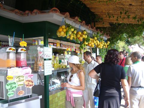カプリ地区の売店です。名産のレモンを使ったシャーベットなどを販売しています。レモンのシャーベットはかなりすっぱ美味いのでぜひ試してください。