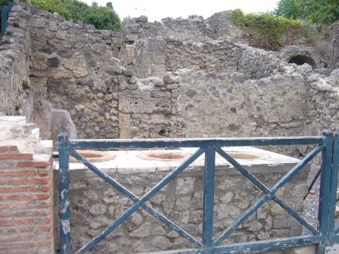 ポンペイ遺跡(32)。昔のパン屋跡です。大きな釜があります。